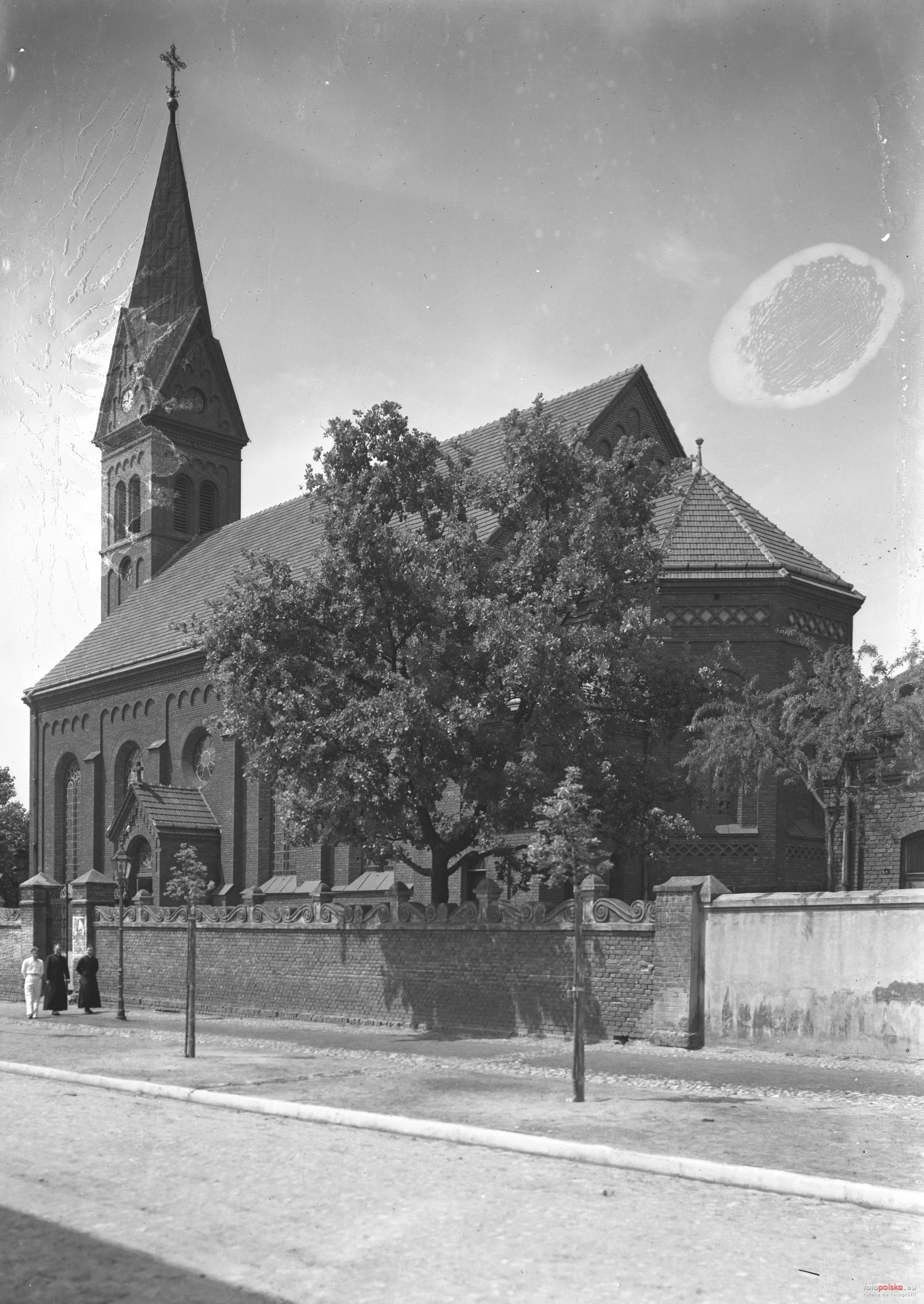 Kamień węgielny pod kościół poświęcił 24 V 1904 r. abp Wincenty Teofil Chościak Popiel. Właściciel młyna parowego i cegielni, Józef Meisner, ofiarował plac pod budowę kościoła i potrzebną ilość cegły i wapna. Kościół w stylu neoromańskim. Plany i kosztorys sporządził inż. Paweł Rübensham. Świątynia jednonawowa, o powierzchni 640 m2, zbudowana z cegły prasówki. Nawa zakończona pięciobocznym prezbiterium, do którego przylegają dwie zakrystie z chórami nad nimi. Główne wejście z przedsionkiem od strony zachodniej i dwa wejścia boczne z mniejszymi przedsionkami – od strony południowej i północnej, wieża o wysokości 26 m pokryta blachą miedzianą. Zakończenie budowy w grudniu 1905 r., poświęcony 10 XII 1905 r. przez ks. Karola Szmidla, proboszcza parafii Podwyższenia Świętego Krzyża w Łodzi.