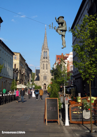 1 pobranie 177 odsłon 6 średnia ocen Poprzednie i następne zdjęcia ireneusz1966 Obiekty widoczne na zdjęciu ul. Mariacka więcej zdjęć (744) Dawniej: Holtze Strasse Ulica Mariacka została zabudowana w drugiej połowie XIX wieku według planu Nepilly'ego z 1875 (blok zamknięty ulic na wschód od Rynku). W 1876 ulicy nadano nazwę Richard Holtzestraße na cześć, obchodzącego wtedy dwudziestopięciolecie pracy jako lekarz, Richarda Holtzego − przewodniczącego ówczesnej Rady Miejskiej Katowic. Nazwa ta obowiązywała do 1922, oraz w latach niemieckiej okupacji Polski (1939−1945). Pod koniec XIX wieku przy ulicy działała restauracja Kasulke[7]. 27 stycznia 1901 w domu przy Holtzestraße 18 urodził się Willy Fritsch − jedna z najważniejszych gwiazd dawnego kina niemieckiego. Przed I wojną światową pod numerem 4−6 założono hotel Savoy; istniał do 1939; w okresie międzywojennym należał do A. Czaplickiego. W restauracji hotelu dnia 20 czerwca 1922 na uroczystym śniadaniu spotkali się Wojciech Korfanty i Józef Rymer ze Stanisławem Szeptyckim. W dwudziestoleciu międzywojennycm przy ulicy swoją siedzibę miały: Bank Śląski - Banque de Silésie SA (oddział, pod numerem 24), hotel Europejski (wzniesiony w latach 1930−1931 przy ul. Mariackiej 15), restauracja Kessel Juliusza Grundmanna (pod numerem 27), restauracja Józefa Adamaszka (pod numerem 24), cukiernia Astoria Walentego Rybki (ul. Mariacka 1), oddział towarzystwa ubezpieczeniowego Kotwica (pod numerem 3). Około 1926 pod numerem 2 działalność prowadził Bank Dewizowy, pod numerem 12 − Górnośląski Bank Związkowy, pod numerem 17 − Ogólna Spółka Rewizyjna i Powiernicza Vera. Przed II wojną światową przy ul. Mariackiej 5 założono Dom Techniczno-Handlowy Industria Ludwika Żmigroda. W latach 1925−1926 pod numerem 13 znajdował się konsulat Brazylii i redakcja oddziału Ilustrowanego Kuriera Codziennego, pod numerem 14 − biuro "Polskiego Kolejarza Górnośląskiego". Na rogu ul. Mariackiej, obok Astorii, zlokalizowany był początkowy przystanek linii atobusowej Katowice −Sosnowiec, uruchomionej we wrześniu 1925. W dwudziestoleciu międzywojennym ulica Mariacka znana była z dużej ilości pracujących tu prostytutek, w szczególności po zlokalizowaniu na rogu z ul. Stanisława Hotelu Europejskiego, gdzie często wyczekiwały na klientów. Kwartał ulic: św. Jana, Dworcowa, Mariacka, Andrzeja Mielęckiego, Stanisława i Starowiejska w zamyśle władz Katowic ma się stać tzw. "małym rynkiem". Pierwszym krokiem była organizacja konkursu na opracowanie koncepcji programowo-przestrzennej, urbanistyczno-architektonicznej zagospodarowania ulic św. Jana, Dworcowej, Mariackiej oraz Andrzeja Mielęckiego, Stanisława i Starowiejskiej w 2005, który wygrało konsorcjum Autorska Pracownia Architektury Kuryłowicz & Associates i Biuro Autorskie "A i R" Jurkowscy Architekci, min. za "dwustronne obsadzenie drzewami ulicy Mariackiej odtwarza jej pierwotny charakter alei ulicznej zamkniętej widokiem kościoła NMP". Remont ulicy Mariackiej przeprowadzono w 2008; koszt przebudowy wyniósł około 12 milionów złotych. W dniach 4−26 lipca 2009 na ulicy Mariackiej odbył się cykl imprez Letnie Granie na Mariackiej. 22 września 2009[21] rozpoczął działalność portal internetowy, poświęcony ulicy − Mariacka.eu. Znajdujące się na tej ulicy nowoczesne ławki i stół Elipse, projektu Macieja Rutkowskiego, zostały nagrodzone w konkursie Śląska Rzecz (2009). Dnia 6 września 2010 odbyła się impreza Mariacka.OPEN[22], w dniach 8−17 września 2010 na deptaku znajdował się "Jarmark Katowicki", promujący miasto i sam deptak; 18 i 19 września 2010 na ulicy Mariackiej odbyły się koncerty bluesowe, a 21 września 2010 otwaro wystawę "Katowickie Synagogi", prezentująca materiały archiwalne dotyczące katowickiej synagogi, pochodzące z archiwum Urzędu Miasta Katowice. Od 2009 na ulicy Mariackiej cyklicznie odbywa się szereg imprez plenerowych i koncertów oraz wydarzeń kulturalnych. Pod koniec 2010 kamienicę na rogu ul. Francuskiej i ul. Mariackiej wyburzono. 27 marca 2011 na ul. Mariackiej odbył się koncert "Solidarni z Białorusią", zorganizowany przez Stowarzyszenie Inicjatywa Wolna Białoruś. Pod koniec kwietnia 2011 na deptaku zasadzono trzydzieści ozdobnych drzewek wiśni piłkowanej rozpoczęto także naprawę odcinka od skrzyżowania z ul. Francuską do Kościoła Mariackiego (koszt naprawy szacowany jest na milion złotych, trwała do czerwca 2011; w 2010 ta część deptaku została uszkodzona przez betoniarkę) |