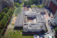 8 maja 2019 , Szkoła Podstawowa nr 118 na Gądowie Małym widziana od zachodu. Pomiędzy ustawionymi w czworobok segmantami szkoły znalazło się miejsce dla amfiteatru.Skomentuj zdjęcie |
