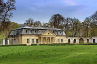 Oficyna północna więcej zdjęć (31) Zabytek: - Zespół pałacowo-parkowy więcej zdjęć (23) Architekt: Jan Ferdynand Nax Atrakcja turystyczna Zbudowano: 1775-1794 Zabytek: A/231/78 Założenie pałacowo-parkowe w Szczekocinach należy do najwcześniejszych kompozycji w stylu krajobrazowym w Polsce. Oparte jest na dwóch osiach kompozycyjnych: oś główna o kierunku wschód-zachód (wyznaczona kolejno przez drogę dojazdową, dziedziniec zamknięty pałacem i ogród w typie swobodnym) oraz oś poprzeczną, gdzie od południa znajdował się ogród geometryczny, a od północy folwark. Po obu stronach pałacu wybudowano symetryczne oficyny połączone z pałacem parterowymi galeriami na rzucie ćwierćkoła. W części południowo-zachodniej zasadzono sad. Centralnym punktem założenia, gdzie krzyżowały się dwie osie kompozycyjne, jest dziedziniec, pierwotnie urządzony w stylu angielskiego parku swobodnego, z podjazdem pod pałac. Obecny jego wygląd pochodzi z XX w. Przedłużeniami głównej osi założenia pałacowego są: droga (obecnie ul. Senatorska) i znajdujący się na jej zamknięciu kościół św. Bartłomieja (przebudowany w 1782 w stylu klasycystycznym przez Urszulę Dembińską). Od 1709 właścicielem dóbr w Szczekocinach była rodzina Dembińskich z Dembian herbu Rawicz. Wówczas istniał jeszcze drewniany dwór wybudowany przez wcześniejszych właścicieli wsi - rodzinę Korycińskich. Decyzję o budowie nowej siedziby podjęli Franciszek i Urszula Dembińscy, około 1775 r. Po śmierci Franciszka w 1776 budowę kontynuowała jego żona. Według Władysława Tatarkiewicza projektantem pałacu był Jan Ferdynand Nax. W okresie końca budowy, tj ok 1793, powstały dwie oficyny, dwie galerie łączące pałac z oficynami oraz ogród w stylu geometrycznym. Na początku XIX w. wybudowano ogrodzenie i dwie kordegardy przy głównym wejściu, a także rozbudowano folwark. Po II wojnie światowej w pałacu mieściła się szkoła. W 1980 w wyniku pożaru, zniszczeniu uległy dach oraz konstrukcja więźby. W latach 80. XX w. w pałacu przeprowadzono prace remontowe planując stworzyć w nim centrum kultury. Od 1990 obiekt jest nieużytkowany. W 2025 rozpoczęto kolejny remont. ul. Senatorska więcej zdjęć (271) |