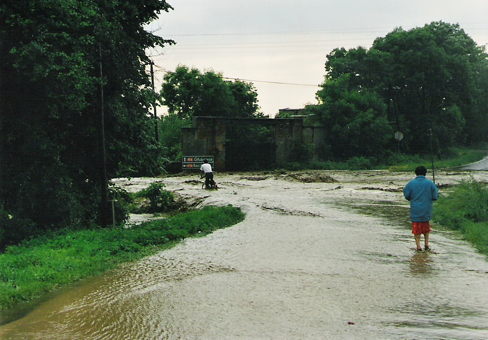Lata 1996-2000 , Ulica Polna , skrzyżowanie ze Zbożową w czasie oberwania chmury. Fotografię udostępnił p. Z. Mańko.Skomentuj zdjęcie |