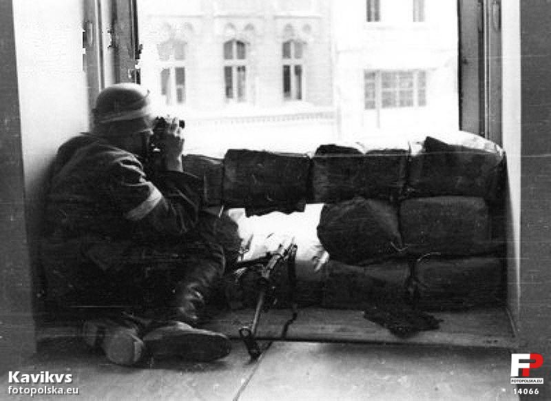 sierpień 1944 , Obserwacja niemieckich pozycji w ogrodzie Saskim z powstańczego stanowiska obserwacyjnego w domu przy ulicy Marszałkowskiej róg Moniuszki. Fot. Eugeniusz LokajskiSkomentuj zdjęcie |