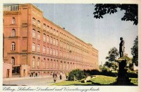 1941 , Dzisiejszy "Elzam-Zamech" a po prawej pomnik Ferdynanda Schichau. Na pierwszym planie przed pomnikiem widać zejście do schronu przeciwlotniczego.
