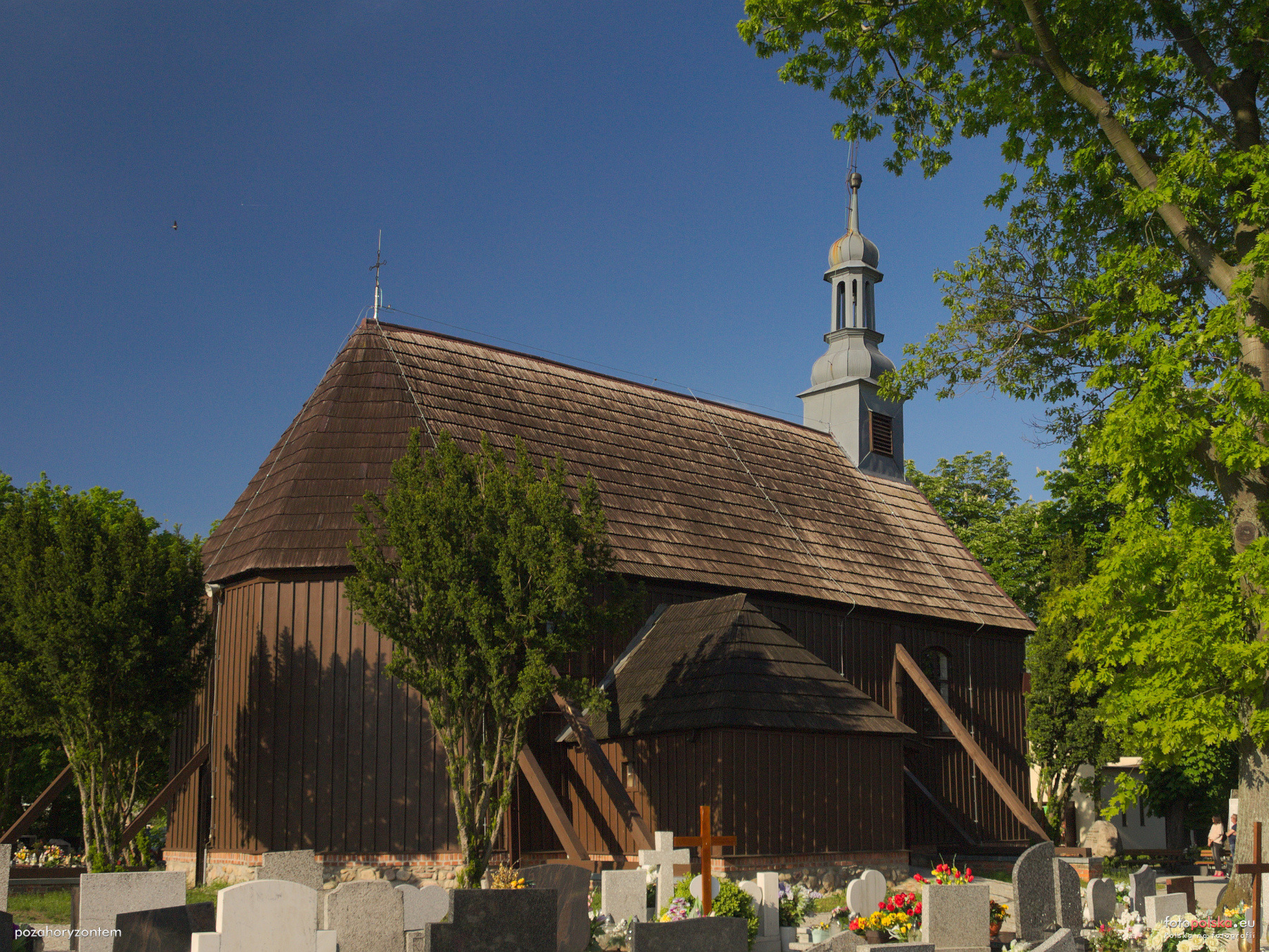 18 maja 2019 , Widok z terenu przykościelnego cmentarza (od południowego zachodu).Skomentuj zdjęcie |