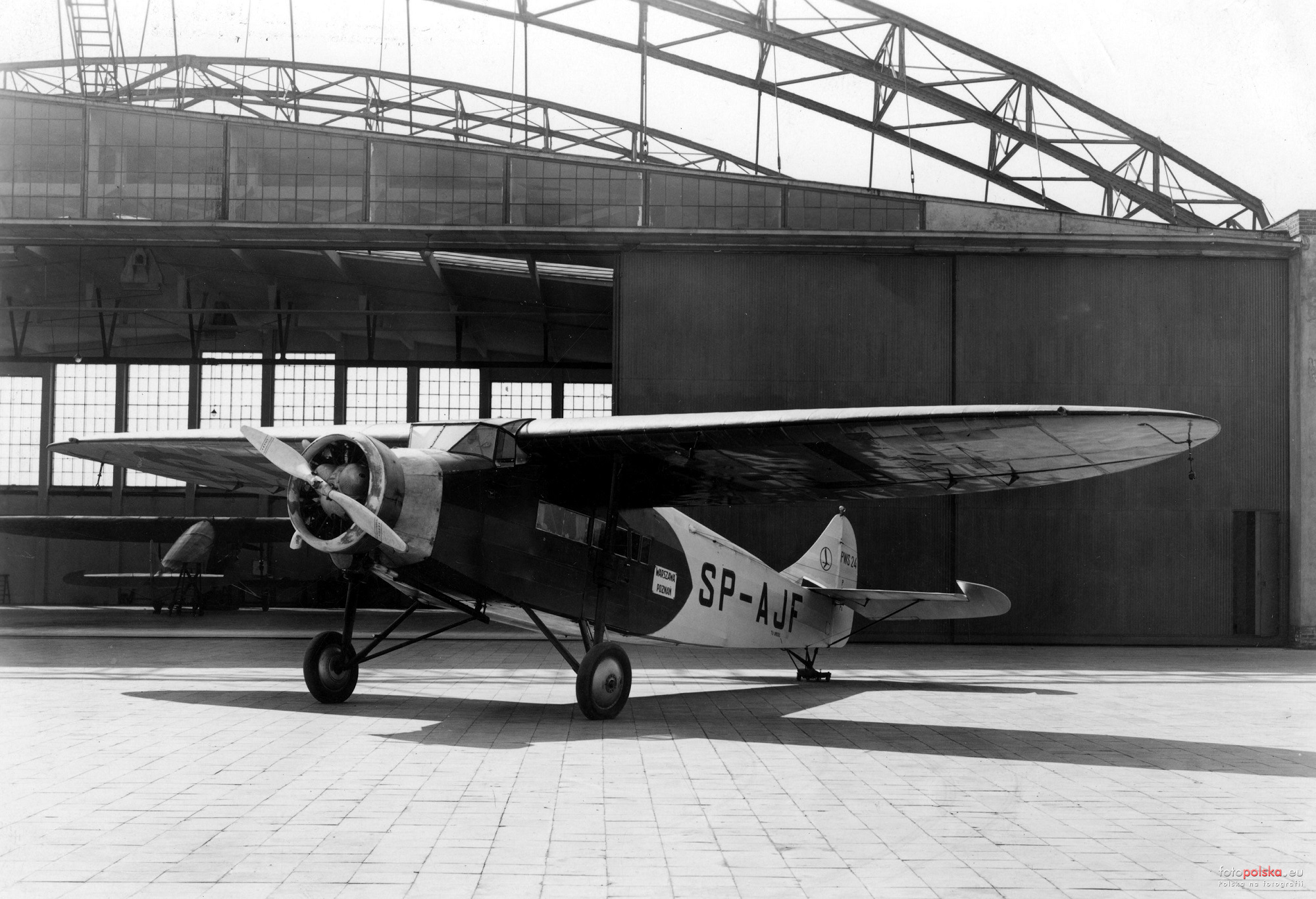Lata 1933-1936 , Samolot komunikacji pasażerskiej typu "PWS 24" (SP-AJF), wyprodukowany w Podlaskiej Wytwórni Samolotów w Białej Podlaskiej, kursujący na linii Warszawa - Poznań.Skomentuj zdjęcie