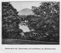 1920 , Rzeka Bóbr w Janowicach Wielkich. Na pierwszym planie gospodarstwo przy ul. Chłopskiej 7, na drugim dom nr 12, w którym mieszkał malarz Hugo Scheinert. W tle SokolikSkomentuj zdjęcie |