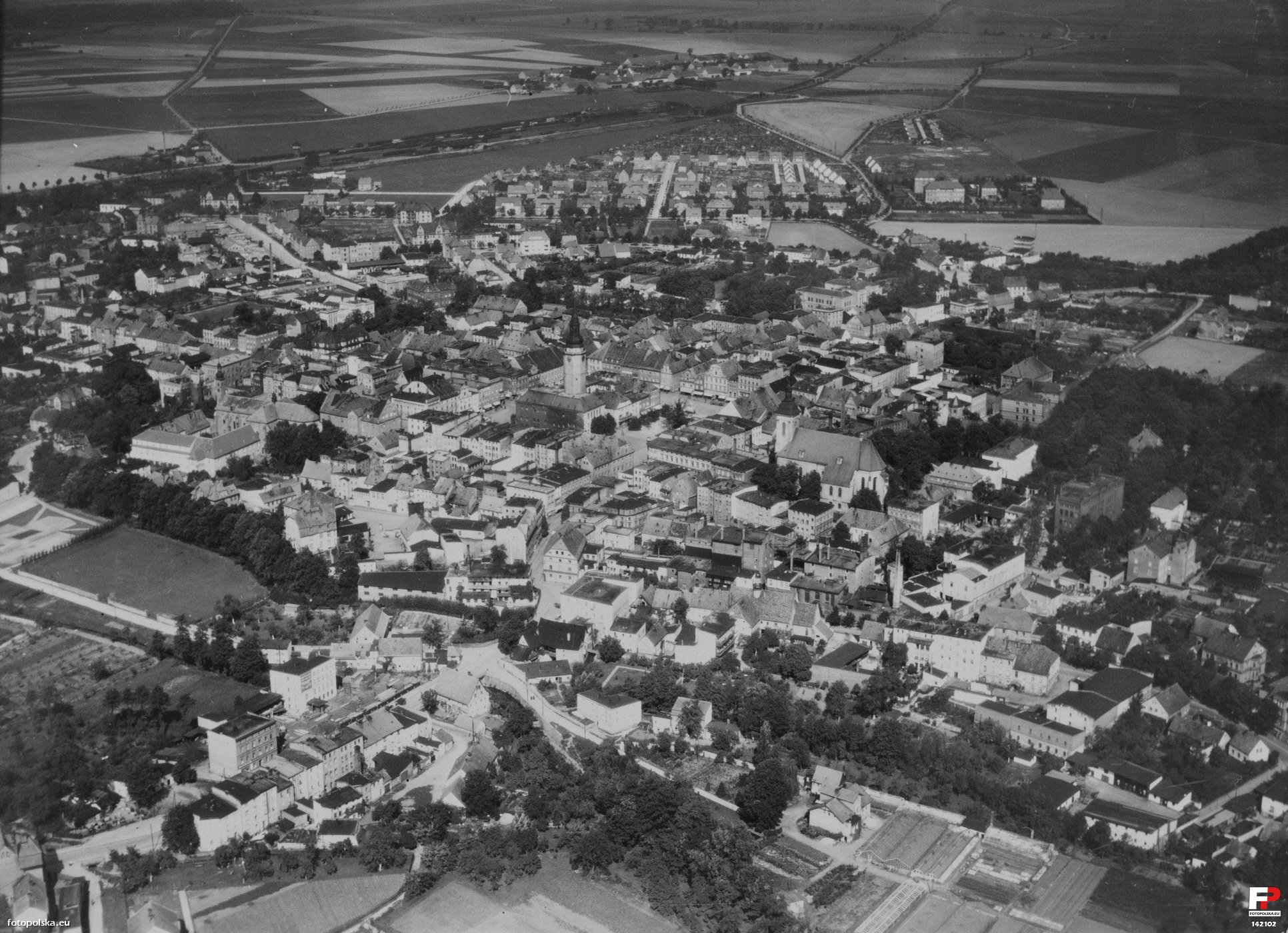 Lata 1935-1944 , Strzelin. Zdjęcie lotnicze miasta; widok z południowego-wschodu.Skomentuj zdjęcie