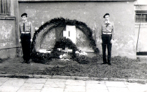 1 listopada 1963 , Radom, ul. Kościuszki 6. W czasie IIWŚ siedziba Gestapo. Warta honorowa harcerzy z Technikum Mechanicznego przy budynku, w którym więziono i mordowano Polaków walczących z niemieckimi okupantami.Skomentuj zdjęcie