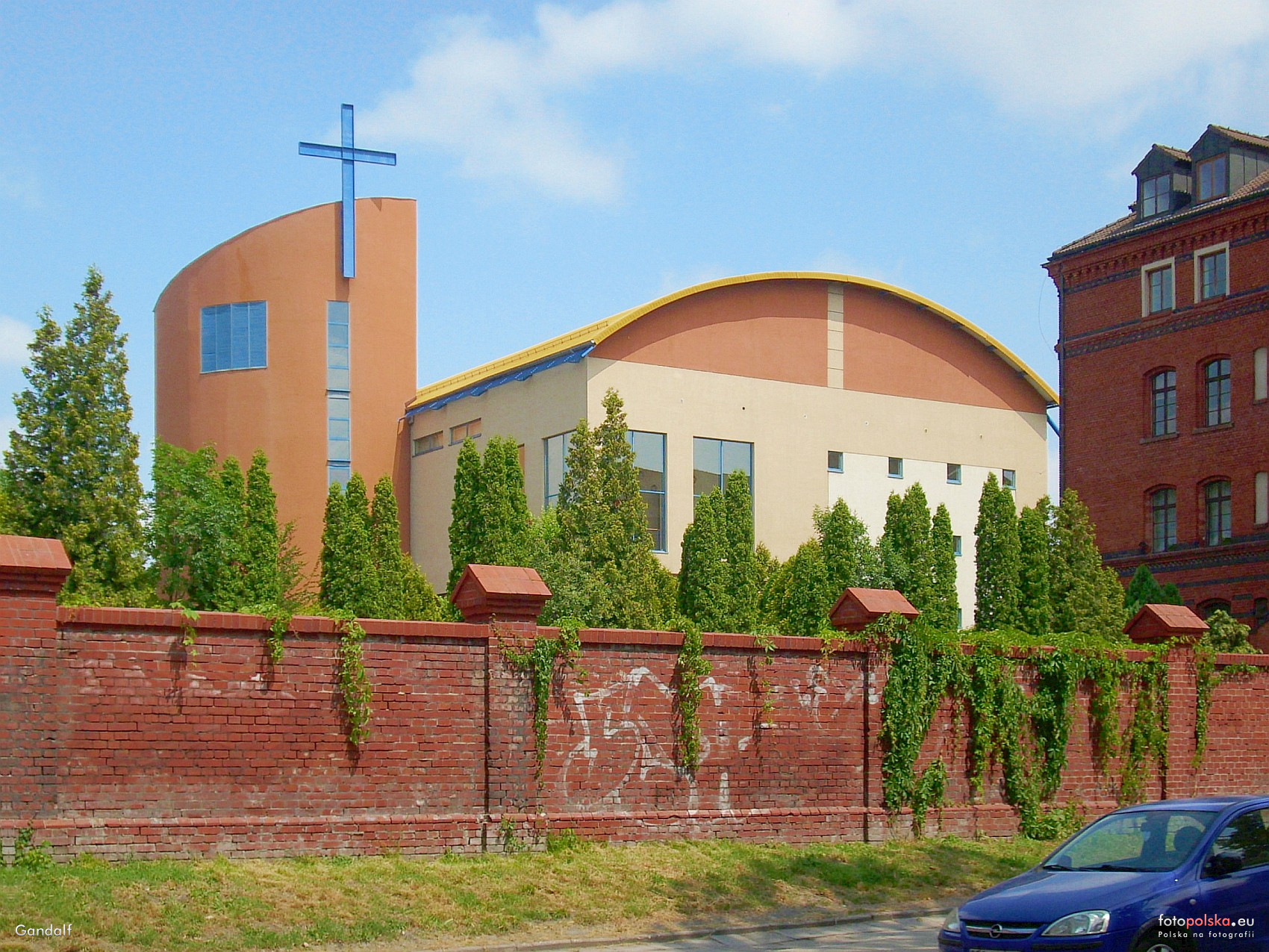 14 czerwca 2019 , Kościół św. Jadwigi Śląskiej, widok zza muru otaczającego dawny kompleks koszarowy.Skomentuj zdjęcie |