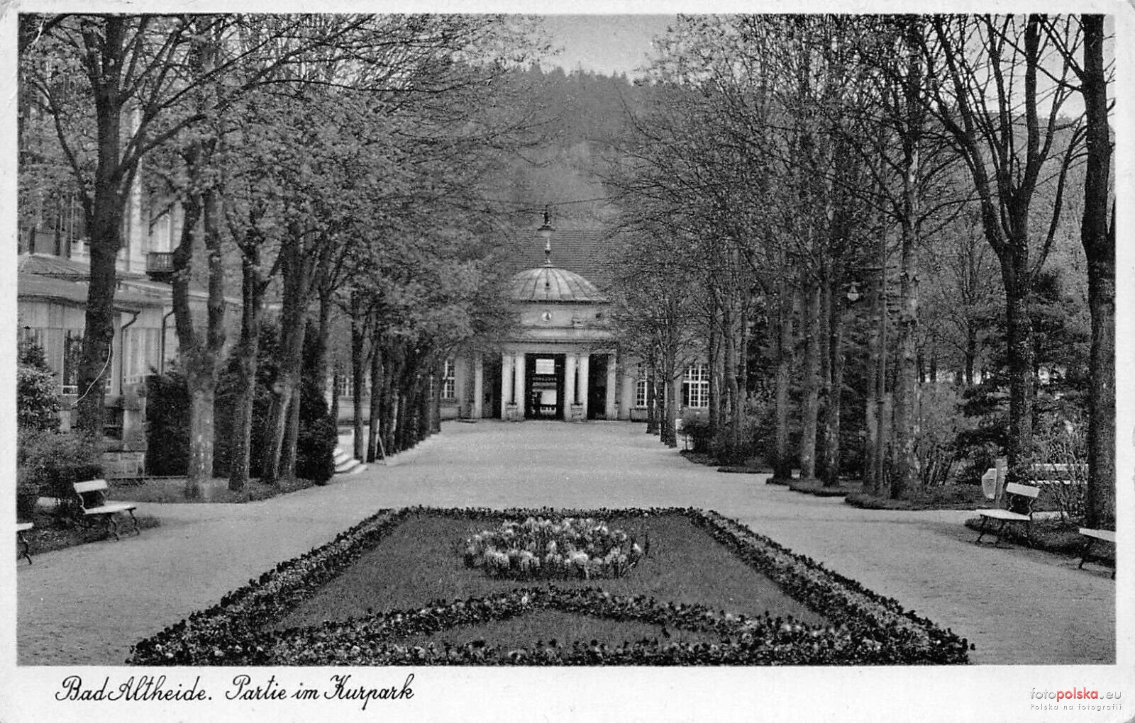 Lata 1930-1940 , Promenada w Parku Zdrojowym z widokiem na pijalnię wód mineralnych..Skomentuj zdjęcie