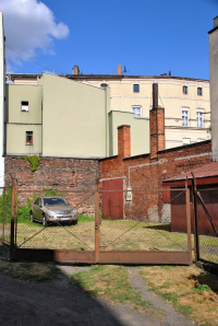 7 lipca 2019 , Zaplecze kamienicy nr 1, z widocznym fragmentem murów miejskich.Skomentuj zdjęcie
