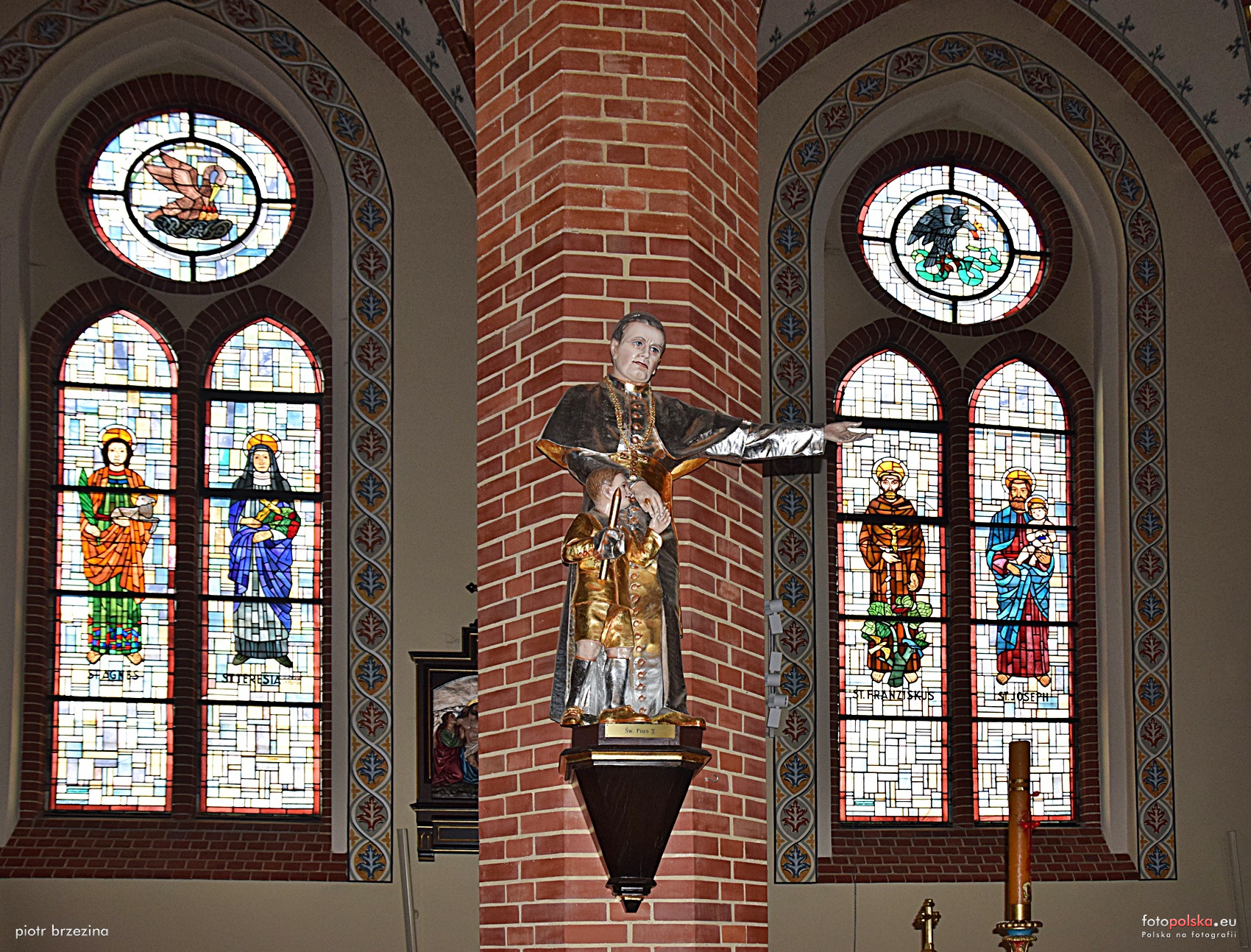 6 kwietnia 2019 , Wnętrze kościoła św. Walentego w Walcach - figura na filarze św. Pius X z lewej witraż św. Agnieszka i św. Teresa z prawej strony św. Franciszek i św. JózefSkomentuj zdjęcie |