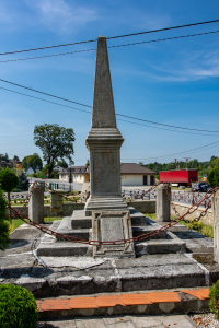 Kościelisko więcej zdjęć (2) Do roku 1933 na tzw. obecnie „Kościelisku” w centrum wsi stał modrzewiowy kościół pw. Wszystkich Świętych. Został on wybudowany w 1565 roku w stylu późnego gotyku i kryty był gontem. W 1687 roku dostawiono do niego murowaną kaplicę. Cały plac otoczony był parkanem wykonanym z piaskowca. Ściany były pokryte polichromią rokokową przedstawiającą postacie świętych. Wewnątrz znajdowały się bogate ołtarze, ambona, belka tęczy o ozdobnym wykroju, sprawione w latach 1746 – 1761 przez ówczesnego proboszcza, ks. Tomasza Słowińskiego. Był to wyjątkowo piękny kościół z wieżą izbicową nakrytą hełmem ostrosłupowym. Niestety, w 1933 roku został zniszczony przez pożar i doszczętnie spłonął. Źródło: Kościelisko ogrodzone – ogrodzeniem w postaci słupów z kamiennych ciosów połączonych metalowymi elementami. W jego obwodzie stoi drewniany krzyż. W miejscu dawnego przykościelnego cmentarza znajduje się kamienny nagrobek – obelisk na profilowanym postumencie, w narożach kamienia słupy połączone łańcuchami stanowią jego otoczenie. Na obelisku umieszczona jest płyta nagrobna kolatortki Teofili Uniatyckiej i Zofii Kochanowskiej. Zachowały się resztki starodrzewu lipy. Od wschodniej strony kościeliska stoi pomnik upamiętniający mieszkańców gminy poległych w czasie II wojny światowej. |
