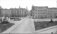 1905 , Ówczesny Burgplan z pomnikiem Moltkego. Na wprost Kupferschmiedestr. czyli dzisiejsza Kotlarska.Skomentuj zdjęcie |