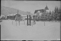 1913 , Klatka meteorologiczna przy Dworcu Tatrzańskim w Zakopanem. Pomiary meteorologiczne rozpoczęto w 1911 r. z inicjatywy Sekcji Przyrodniczej Towarzystwa Tatrzańskiego. Pierwszymi obserwatorami byli Alfred Lityński i Borys Wigilew. W tle widoczny z lewej budynek Szkoły Przemysłu Drzewnego, z prawej Dworzec Tatrzański.Skomentuj zdjęcie |