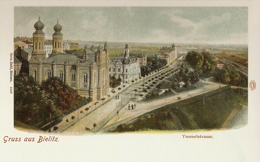 Synagoga Główna więcej zdjęć (25) Architekci: Karol Korn , Ludwik Schöne Zbudowano: 1881 Zlikwidowano: 1939 Synagoga została zbudowana w latach 1879-1881 według projektu Ludwika Schöne i Karola Korna. Jej wierna kopia powstała rok później w Szombathely. Stanowiła charakterystyczny akcent architektoniczny miasta, posiadała attykę, liczne sterczyny z kopułami, neoromańskie okna oraz dwie ośmioboczne wieże z hełmami. Budowlę otaczała bujna zieleń. Główne wejście znajdowało się od strony ulicy Mickiewicza. Podczas II wojny światowej, 13 września 1939 roku synagoga została doszczętnie zniszczona; zachowały się jedynie fundamenty i część piwniczna budynku. W latach 60. XX wieku zbudowano w jej miejscu modernistyczny gmach, w którym obecnie mieści się [ Galeria Bielska BWA]. W 1991 r. Komitet Obywatelski wmurował na zachodniej ścianie BWA tablicę pamiątkową. Widoki z hotelu "President" więcej zdjęć (35) Panoramy Bielska-Białej więcej zdjęć (66) ul. 3 Maja więcej zdjęć (580) Dawniej: Neue Zufahrtstraße, Tunnelstraße, Kaiser-Franz-Josef-Straße, Adolf-Hitler-Straße, W. Lenina Została wytyczona w 1889 r. jako droga prowadząca z centrum miasta do nowego dworca kolejowego (dziś Bielsko-Biała Główna). Stała się główną arterią wówczas gwałtownie się rozwijającego Dolnego Przedmieścia, szybko zapełniając się wielkomiejską zabudową, tworzoną głównie według projektów Karola Korna (a po jego śmierci w 1906 r. kancelarii architektonicznej Karl Korn kierowanej przez jego brata - Felixa); stąd też zwana jest czasami "promenadą Korna". Najpierw nosiła nazwę Nowej Drogi Dojazdowej (Neue Zufahrtstraße), potem Tunelowej (Tunnelstraße), aż w 1898 r. z okazji 50-lecia panowania Franciszka Józefa I uczczono w nazwie ulicy postać władcy. Obecną nazwę nadano w latach międzywojennych, jednak już w 1939 r. doszło do kolejnej zmiany - tym razem na Adolf-Hitler-Straße - a do następnej w roku 1945 - na Lenina. ''3 Maja'' przywrócono w 1990 r. Zabudowę zachodniej pierzei tworzy przede wszystkim zespół trzypiętrowych kamienic mieszczańskich z lat 1890–1913, z kolei od wschodu na odcinku od Przechodu Schodowego ulica pozostaje praktycznie niezabudowana (z wyjątkiem skrzyżowania z ul. Wałową) ze względu na trochę niefortunny przebieg linii kolejowej. Obecnie na całej długości ma dwa pasy ruchu w każdą stronę (w rejonie skrzyżowań więcej), nieoddzielone pasem zieleni; stanowi część drogi wojewódzkiej nr 942. Niestety powoduje to, że dawna reprezentacyjna aleja jest dziś tylko drogą przelotową i od lat żadne władze nie chcą tego zmienić... |