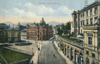 1915 , Pocztówka z 1915 r. przedstawiająca ulubione ujęcie bielskich fotografów w tamtych czasach, czyli ul. Zamkowa i tzw. pl. Teatralny z trzema pięknymi obiektami... Po lewej Teatr Polski, w centrum Poczta Główna, a po prawej Zamek Sułkowskich (na górze) z Bazarami Zamkowymi (na dachach której istniał piękny ogród) oraz skarpę wykopu linii kolejowej (poniżej placu).Skomentuj zdjęcie |