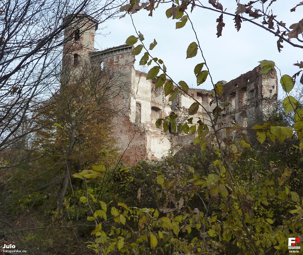 2 pobrania 1249 odsłon 5 średnia ocen Poprzednie i następne zdjęcia Julo Obiekty widoczne na zdjęciu Zamek więcej zdjęć (51) Atrakcja turystyczna Zbudowano: 1319 Dawniej: Schloss Auras Zabytek: A/3913/400 z 24.11.1956 Historia Pierwsze wzmianki o należącej do książąt wrocławskich miejscowości Uraz pochodzą z początku XIII wieku, wzmianki o grodzie kasztelańskim strzegącym przeprawy na Odrze - sprzed połowy tego stulecia. W roku 1291 na mocy testamentu Henryka Probusa gród ten przeszedł wraz z ziemiami na prawym brzegu Odry na własność księcia Henryka głogowskiego, by w 1312 trafić w ręce synów głogowczyka: Konrada i Bolesława. Przy sporządzaniu aktów dziedzicznych potwierdzono wówczas miasto i zamek, określając je w dokumentach jako civitatem et castrum. Jednak już kilka lat później Uraz ponownie stał się własnością książąt wrocławskich i około 1319 przekazany został w lenno trzem braciom Radakom. Jeden z owych braci, Andreas Radak, rozbudował dotychczasowe założenie, którego pierwszego fundatora ani czasu powstania nie można dzisiaj jednoznacznie określić - wśród historyków występują na ten temat poważne rozbieżności i skrajne opinie, łącznie z tezą, iż zamek wybudował Zakon Templariuszy jeszcze przed rokiem 1250. W 1336 miasto Uraz nabył Konrad von Borschnitz, starosta Wrocławia, posiadacz wielu dóbr ziemskich. W roku 1344 wzmiankowany jest burgrabia Hancho von Auras, zaś w 1363 - Herman von Borschnitz, przyszły asesor sądu starościańskiego i wierzyciel książąt brzeskich. W latach 1428-43 w Urazie wzmiankowani są przedstawiciele rodu von Tschirna. W 1466 czeski król Jan z Podiebradu nadał lokalne dobra rycerzowi Christophowi von Skopp, któremu przypisuje się rozbudowę średniowiecznej warowni o kolejne piętra i nowe umocnienia. Po nim w źródłach pojawia się książę oleśnicki Konrad Biały, a od 1492 Christoph von Joerger, rozpoczynając tym samym blisko 150-letni okres panowania tej rodziny w Urazie. W międzyczasie, tj. w połowie XVI stulecia i około 1630r. nastąpiły dalsze przekształcenia zameczku - dobudowano wówczas trakt w jego północnej części z narożnymi wieżyczkami, wprowadzono murowane podziały wnętrz, a całości nadano formy barokowe. W 1640r. od von Joergerów budowlę odkupiła rodzina von Saurma-Jeltsch, następnie w latach 1690-95 posiadłość ta należała do barona Balthazara von Logau i odtąd już często wędrowała z rąk do rąk. Około 1810, gdy Uraz stanowił własność barona von Koschuzky, rozebrano przylegające do zamku południowo-wschodnie mury obronne i most zwodzony, a fosy częściowo zasypano. Samą rezydencję przebudowano w stylu neogotyckim w drugiej połowie XIX wieku, niemal zupełnie likwidując elementy starszego wystroju. Z początkiem XX stulecia zaniedbywany gmach podupadł i ostatecznie uległ zniszczeniu w roku 1945, gdy podpalili go żołnierze radzieccy. Po wojnie rozszabrowany, pozbawiony niezbędnej opieki szybko przemienił się w ruinę - w 1952 zawaliły się sklepienia i strop parteru, a rok później runął narożnik południowy. Resztki murów zabezpieczono w 1956. Architektura Zamek usytuowano w zakolu Odry i otoczono wałem ziemnym oraz fosą. Składał się on z poligonalnego narysu murów obronnych, z budynkiem mieszkalnym w formie wieży wpisanej w zachodni narożnik obwodu, i baszty bramnej po stronie północnej. Wieża mieszkalna, początkowo trzykondygnacyjna, zbudowana została z rudy bagiennej i cegły na planie trójkąta równobocznego, o ostrych narożach wymierzonych w stronę miasta i Odry, powodujących "ślizganie" się pocisków po murze, a tym samym łagodzących przykre skutki ewentualnego ostrzału nieprzyjaciela - przy czym długość jednego boku wynosiła około 23 metry, a grubość ścian w dolnych partiach - około 2,5 metra. Była to konstrukcja niezwykle rzadka - prawdopodobnie na świecie istnieją tylko trzy zamki oparte na podobnym planie. Przyziemie i dwa piętra wieży przykryte były sklepieniami krzyżowo-żebrowymi, wspartymi na centralnie umieszczonych słupach, i przedzielone ściankami działowymi na trzy zbliżone kształtem i wielkością pomieszczenia na każdej z tych kondygnacji. W okresie późniejszych przekształceń budynek podwyższono o dwa kolejne piętra, wprowadzono nową kamieniarkę okien, a całość nakryto stromym trójpołaciowym dachem. Od północy przy dobudowanym trakcie umieszczono dwie wysmukłe, wieloboczne wieże, zwieńczone barokowymi hełmami. Wygląd rezydencji zmieniła całkowicie przebudowa neogotycka z XIX wieku. Stan obecny Do czasów współczesnych zachowała się malownicza skorupa murów zewnętrznych wieży mieszkalnej do wysokości trzech kondygnacji od strony północnej i zaledwie do parteru od południa; przetrwały też sklepione piwnice, resztki kolistego filaru, fragmenty ścianek działowych, a także fundamenty murów obwodowych oraz średniowiecznej baszty. Od niedawna ruina ma nowego właściciela, który z godną podziwu konsekwencją stara się ją wskrzesić i częściowo odbudować, o czym traktuje dramatyczny tekst w ramce poniżej. Dla osób postronnych zamek jest niestety niedostępny - ogrodzony szczelnie wysokim płotem z drutu skutecznie zniechęca do odwiedzin na własną rękę. Można go jednak obejrzeć z drogi gruntowej, otaczającej posiadłość, skąd jest bardzo dobry widok - szczególnie w miesiącach bezlistnych. Jeśli komuś bardzo zależy na dokładniejszych oględzinach, powinien wcześniej zapytać gospodarza, p. Andrzeja Lipińskiego, który zamieszkuje tutaj na stałe. tekst za |
