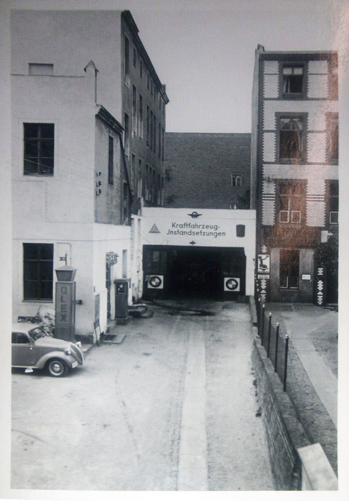 1937 , Warsztat naprawy motocykli i samochodów ''Molto-Fahrrad-Werke G.m.b.H.'' w podwórzu kamienicy na Jakobstraße 20Skomentuj zdjęcie |