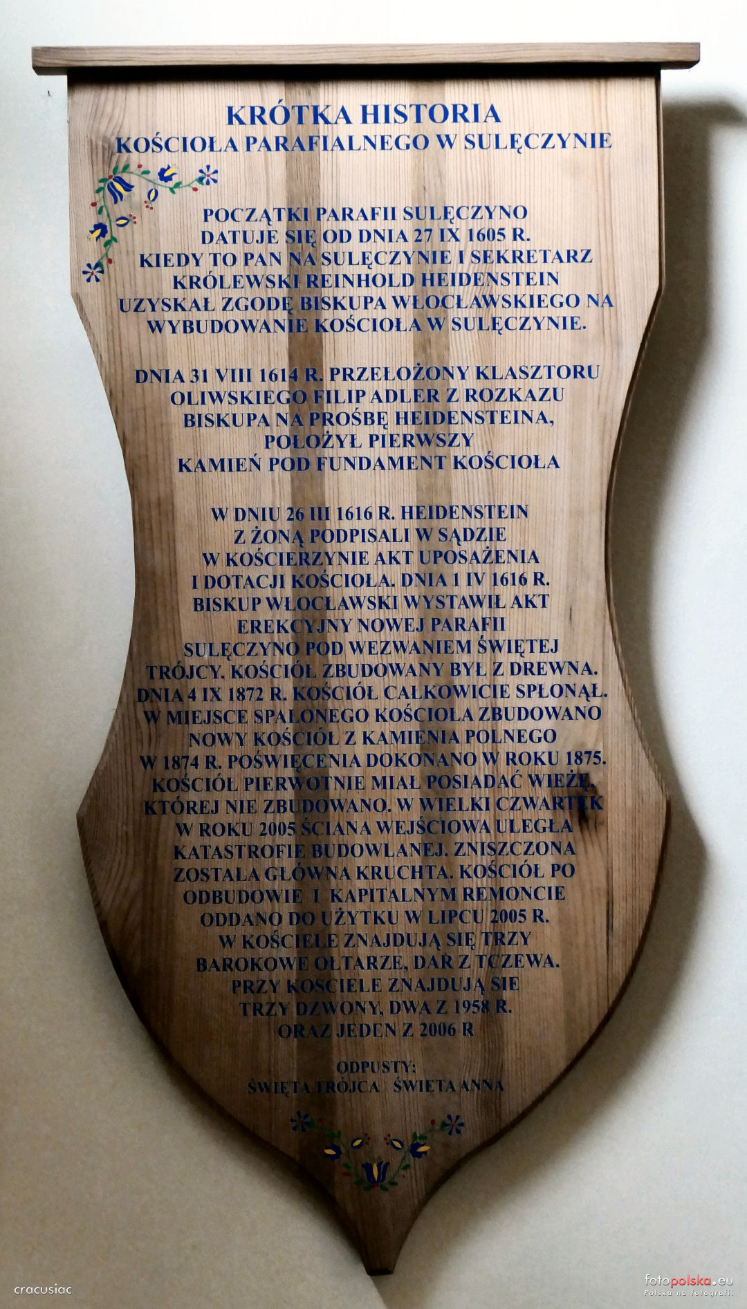 16 maja 2019 , Historia kościoła spisana na drewnianej desce.Skomentuj zdjęcie |
