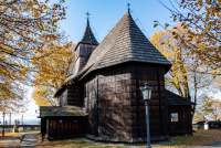 1 pobranie 490 odsłon 6 średnia ocen Poprzednie i następne zdjęcia adi_62 Obiekty widoczne na zdjęciu Kościół św. Marcina Biskupa więcej zdjęć (21) Zbudowano: 2 poł XV w Kościół p.w. Świętego Marcina Biskupa z Tours z 2 poł. XV w. Przebudowywany w 1 poł. XVII w. – dobudowa wieży i XVIII w. – dodano soboty. Restaurowany w 1900 i 1968 r. pod kierunkiem arch. Juliana Klimka – wymiana gontów na dachu. Budowa i wyposażenie. Kościół drewniany, jednonawowy konstrukcji zrębowej. Orientowany, zbudowany w stylu późnogotyckim z drewna modrzewiowego. Prezbiterium mniejsze od nawy, zamknięte trójbocznie z boczną zakrystią. Wieża konstrukcji słupowej, osadzona na nawie z izbicą. Zwieńczona gontowym dachem namiotowym. Kruchta od frontu i z boku nawy. Świątynia otoczona zamkniętymi, oszalowanymi sobotami. Dach jednokalenicowy, kryty gontem. Okna tylko od stronie południowej. Trzy gotyckie portale: dwa ostrołukowe, a jeden o wykroju ściętego trójliścia. Wewnątrz strop płaski, wsparty na słupach z zaskrzynieniami w nawie. Chór muzyczny wsparty na dwóch kolumnach z prospektem organowym rokokowo – klasycystycznym z 1 poł. XIX w. Parapet chóru prosty z czterema późnogotyckimi płaskorzeźbami z p. XVI w. Belka tęczowa z barokowym krucyfiksem z XVIII w. Stropy ozdobione polichromią figuralną z ok. 1900 r., a ściany – polichromią ornamentalną. Ołtarz główny wczesnobarokowy z 1 poł. XVII w. Dwa ołtarze boczne późnobarokowe: lewy z 1 poł. XVIII w. i prawy z 2 z k. XVIII w. Późnogotycki krucyfiks z p. XVI w. Dzwonnica murowana z trzema dzwonami (jeden z 1606 r.). Ogrodzenie murowano – drewniane z daszkiem gontowym |
