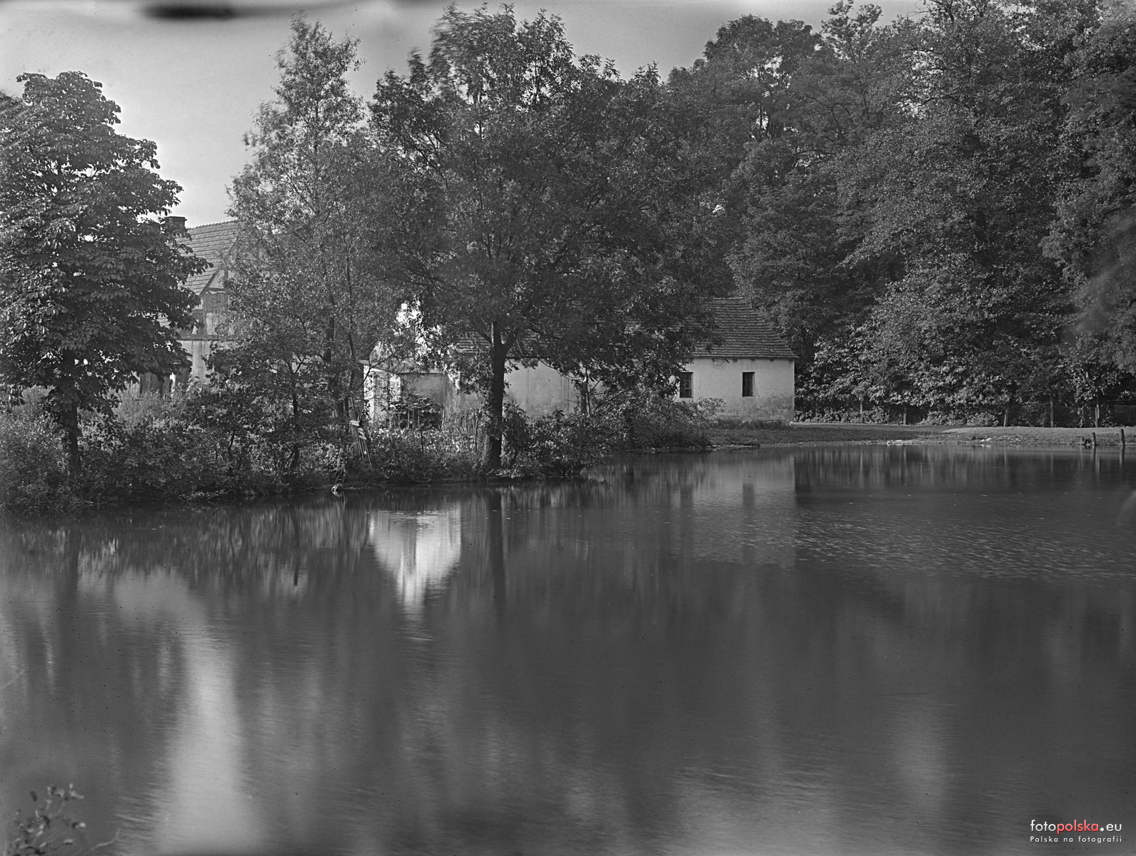 1925 , Widok od strony pałacu na staw i zabudowę przy ulicy Tadeusza Kościuszki.Skomentuj zdjęcie |