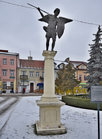 5 lutego 2019 , Płońsk, pl. 15 Sierpnia (Rynek). Pomnik Świętego Michała Archanioła autorstwa Jarosława Urbańskiego, odsłonięty 29. 09. 2010r.Skomentuj zdjęcie