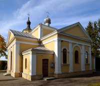 0 pobrań 297 odsłon 6 średnia ocen Poprzednie i następne zdjęcia Wiesław Smyk Obiekty widoczne na zdjęciu Cerkiew Świętej Trójcy więcej zdjęć (13) Atrakcja turystyczna Zbudowano: 1870-1875 Zabytek: A/1313 z 11.10.1979 Cerkiew Świętej Trójcy (znana też pod wezwaniem św. Jerzego) – prawosławna cerkiew parafialna w Tarnogrodzie. Należy do dekanatu Zamość diecezji lubelsko-chełmskiej Polskiego Autokefalicznego Kościoła Prawosławnego. Cerkiew prawosławna w Tarnogrodzie powstała w pierwszych latach po lokacji miasta, w końcu lat 60. XVI w. Według różnych źródeł świątynia pozostawała prawosławna do 1772, lub tylko do połowy XVII w., następnie przeszła do Kościoła unickiego. Była to budowla drewniana, jednokopułowa, z wolno stojącą dzwonnicą. Na przełomie lat 60. i 70. XIX w. lub na początku lat 70. XIX w. z funduszu rządowego przeznaczonego na budowę nowych cerkwi unickich w Tarnogrodzie powstała nowa murowana cerkiew, która do dnia dzisiejszego pełni funkcję prawosławnej świątyni parafialnej. Obecnie wyznanie budowla przyjęła w 1875 po likwidacji unickiej diecezji chełmskiej. ul. Cerkiewna więcej zdjęć (13) |