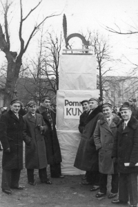 Lata 1929-1938 , Tydzień Akademika, studenci pod "pomnikiem kuny" w Wilnie.Skomentuj zdjęcie