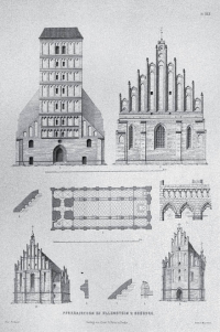 1860 , Kościoły parafialne - widoki fasad obu kościołów, rzut i szczegóły architektoniczne na jednym arkuszu, ryt. Muschler według rys. F. von Quasta, pochodzi z: Zeitschrift für Bauwesen, wyd. Ernst & Korn, Berlin, ok. 1860Skomentuj zdjęcie |