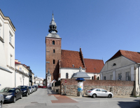 Bazylika Mniejsza św. Jakuba Apostoła więcej zdjęć (53) Atrakcja turystyczna Zbudowano: XIV/XV w. Zabytek: 169-IX-15 z dnia 21.07.1948 r. oraz 200 z 04.09.1967 r Kościół Świętego Jakuba Apostoła w Piotrkowie Trybunalskim – rzymskokatolicki kościół parafialny w Piotrkowie Trybunalskim, w województwie łódzkim. Należy do dekanatu piotrkowskiego archidiecezji łódzkiej. Jest to najstarszy kościół Piotrkowa. Budowla gotycka z barokowymi kaplicami, zbudowana pierwotnie w XII wieku z fundacji Piotra Własta. Obecny wygląd z XIV/XV wieku, polichromia z 1923 roku (Juliusza Makarewicza) oraz fragmentarycznie z lat 60. XX w. (wizerunek Ojca św. Jana XXIII na ścianie południowej). Przy północnej ścianie prezbiterium – cokół pierwotnego kościoła. W zachodniej części gotycka siedmiokondygnacyjna wieża (55 metrów wysokości) zakończona,podobnie jak kaplice, barokowym hełmem z latarnią. Ołtarz główny – klasycystyczny z początku XIX wieku, z obrazem Zaśnięcia Matki Bożej (1510 rok), boczne z ornamentami rokokowymi z połowy XVIII wieku, ambona barokowa z XVIII wieku, marmurowa, chrzcielnica z XVII wieku. Godne uwagi są też obraz Chrztu Chrystusa (1610 rok), epitafia marmurowe z XVII i XVIII wieku. ul. Krakowskie Przedmieście więcej zdjęć (216) Dawniej: Krakowska, Krakauerstr. |
