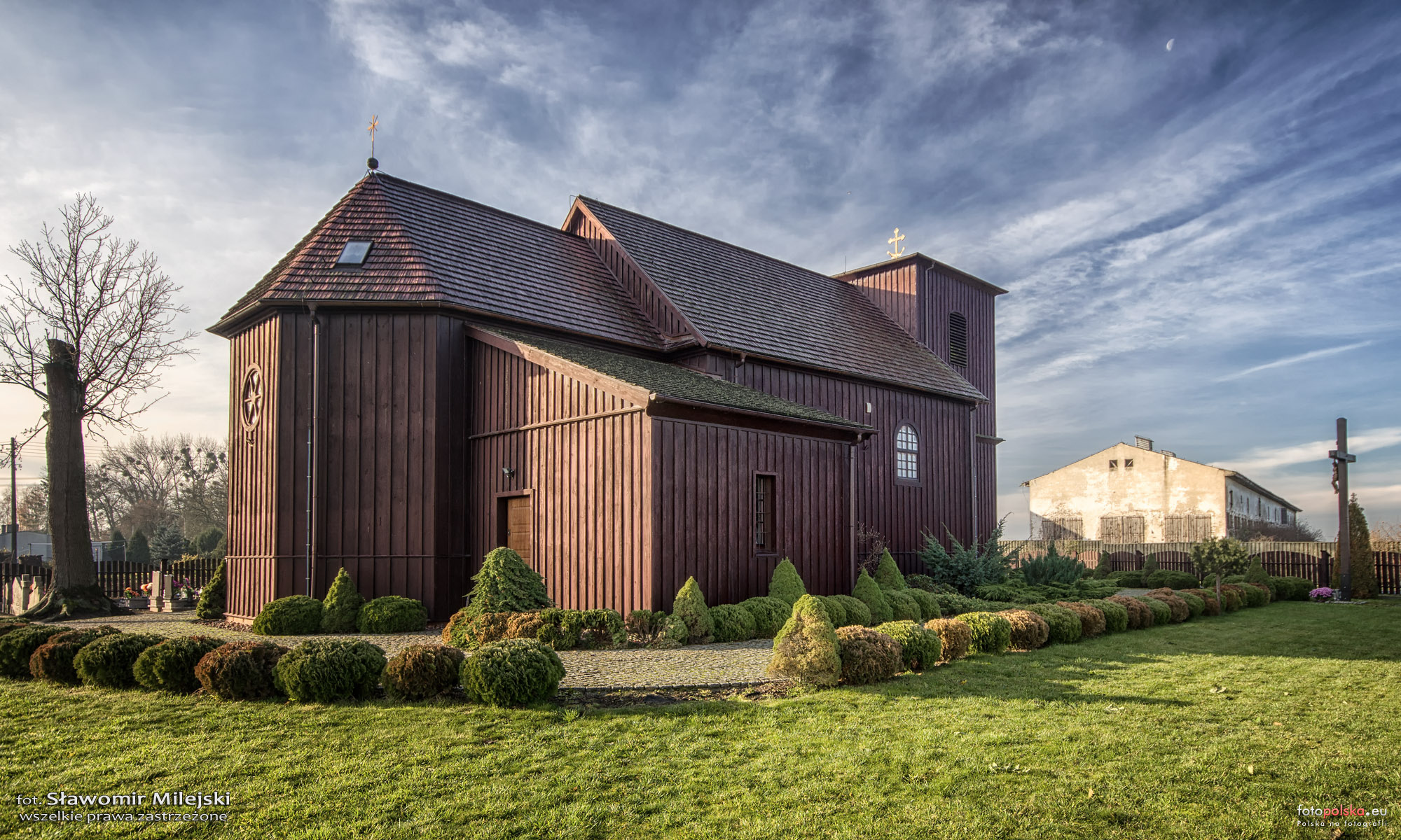 2 pobrania 647 odsłon 6 średnia ocen Poprzednie i następne zdjęcia s_mile Obiekty widoczne na zdjęciu Kościół św. Katarzyny Panny i Męczenniczki więcej zdjęć (6) Zbudowano: 1751 Zabytek: 2431/A z 22.12.1932 Kościół p.w. Świętej Katarzyny Panny i Męczenniczki z 1751 r. Zbudowany z fundacji Franciszkanów. W 1937 r. obniżono wysokość wieży. Dobudowa murowanej zakrystii w 1992 r. Remontowany w latach 2010 – 11. Kościół drewniany, jednonawowy konstrukcji zrębowej. Orientowany, zbudowany na podmurówce z cegły. Mniejsze prezbiterium od nawy, zamknięte trójbocznie z boczną zakrystią. Wieża od frontu, konstrukcji słupowej, dwukondygnacyjna z kruchtą w przyziemiu. Zwieńczona prawie płaskim dachem z krzyżem. Dzwon z 1749 r. Dach dwukalenicowy, kryty gontem. Wnętrze wyłożone boazerią. Strop płaski wspólny dla nawy i prezbiterium. Chór muzyczny wsparty na dwóch słupach z parapetem lekko wybrzuszonym w części środkowej. Belka tęczowa z krucyfiksem i rzeźbami anioł z 2 poł. XVI w. Ołtarz główny z 2 poł. XVII w. Dwa ołtarze boczne z XVIII w. |