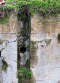 22 listopada 2019 , Zewnętrzna tylna ściana schronu De.25 ze śladami po mocowaniu rury dymowej (Rauchrohr).Skomentuj zdjęcie |