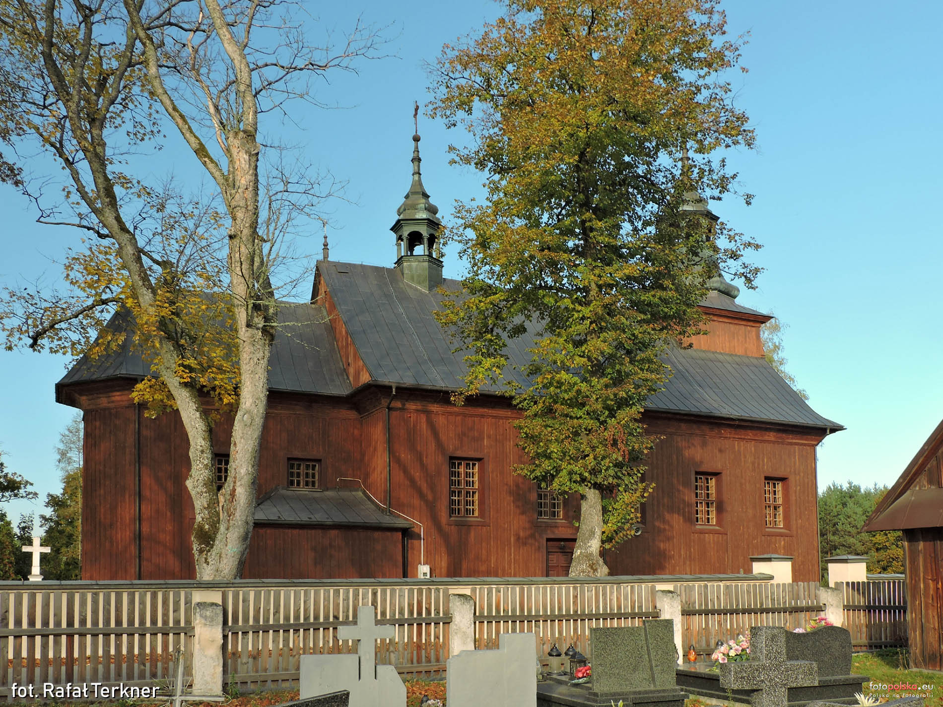 Kościół św. Stanisława więcej zdjęć (19) Atrakcja turystyczna Zbudowano: 1768 Zabytek: A/71 z 26.11.1966 Kościół p.w. Świętego Stanisława Biskupa z 1768 r. Zbudowany z fundacji Jana Jakuba Zamoyskiego wojewody podolskiego. Rozbudowany w latach 1897 – 98 – przedłużenie nawy i dobudowa wieży. Remontowany w 1927 r. – boazerie wewnętrzne. W 1968 r. ks. Kardynał Karol Wojtyła przekazał do kościoła autentyczne relikwie Świętego Stanisława w postaci części kości. W 1975 r. zamiana gontu na dachach na blachę. Kościół drewniany, trójnawowy konstrukcji zrębowej. Nie orientowany, zbudowany z drewna modrzewiowego. Mniejsze prezbiterium od nawy, zamknięte trójbocznie z dwoma bocznymi zakrystiami. Wieża nadbudowana nad nawą. Zwieńczona blaszanym hełmem z latarnią. Dach dwukalenicowy, kryty blachą z wieżyczką na sygnaturkę. Zwieńczoną hełmem blaszanym z latarnią. Wnętrze obite boazerią i podzielone na trzy nawy przez dwa rzędy słupów po pięć sztuk z arkadami. Pozorne stropy kolebkowe, niższe w nawach bocznych. Belka tęczowa z barokowym krucyfiksem z poł. XVIII w. Chór muzyczny wsparty na dwóch słupach z organami z 1906 r. Wyposażenie rokokowe z lat 1769 – 79 autorstwa snycerzy Jana i Jakuba Maucherów: ołtarz główny i dwa boczne, ambona drewniana z rzeźbami czterech Ewangelistów., konfesjonał i chrzcielnica. Na wewnętrznych ścianach kościoła tablice ku czci żołnierzy 1 artylerii konnej, poległych w okolicach 23 – 26 września 1939 r. i partyzantów AK z oddziału Michała Wysockiego „Wita", którzy obronili świątynię i wieś przed spaleniem w lipcu 1944 r. Dzwonnica murowana, arkadowa z 1787 r. z trzema dzwonami z 1906 r. w ogrodzeniu w postaci muru z bramką i czterema kapliczkami z XVIII w. Plebania murowana z p. XX w. za : |