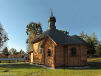 2 pobrania 476 odsłon 6 średnia ocen Poprzednie i następne zdjęcia Rafał T Obiekty widoczne na zdjęciu Kościół Zwiastowania NMP więcej zdjęć (20) Zbudowano: 1905 Dawniej: Cerkiew prawoswławna Zabytek: A/1517 z 22.09.1987 Cerkiew prawosławna z 1905 r. Od 1918 r. kościół katolicki. W czasie wojny ponownie cerkiew prawosławna. Od 1948 r. kościół rzymskokatolicki p.w. Zwiastowania NMP. Odnowiony w latach 90 XX w. Budowa i wyposażenie. Cerkiew drewniana, jednonawowa konstrukcji wieńcowej. Trójdzielna, zbudowana z drewna sosnowego. Prezbiterium mniejsze od nawy, zamknięte trójbocznie z bocznymi zakrystiami. Babiniec z wejściem głównym osłoniętym daszkiem wspartym na dwóch słupach. Nawa nakryta kopułą, zwieńczona wieżyczką z cebulastym hełmem. Dach kryte blachą. Wnętrze pomalowane olejną farbą z płaskim stropem. Oryginalne wyposażenie zniszczone w 1945 r. przez opuszczających wieś wiernych prawosławnych. |