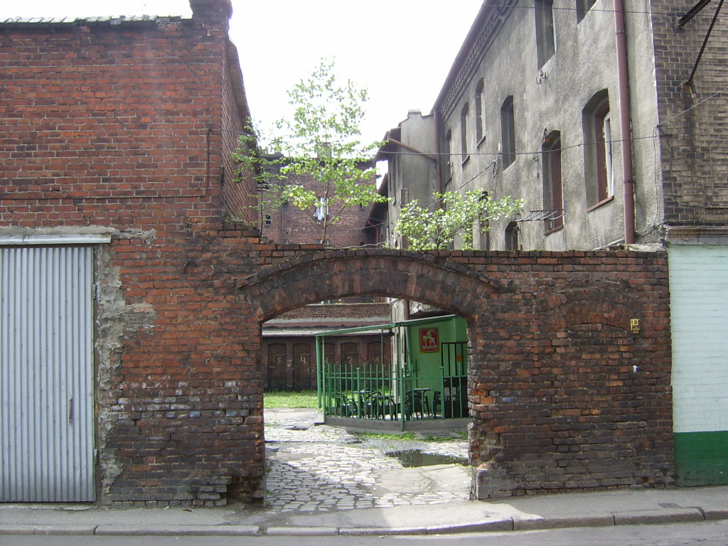 czerwiec 2004 , Bar "pod lustrami" od placu. Garażu, bramy z akcentami florystycznymi i chlywików nie ma. W 2017 jest tak:Skomentuj zdjęcie