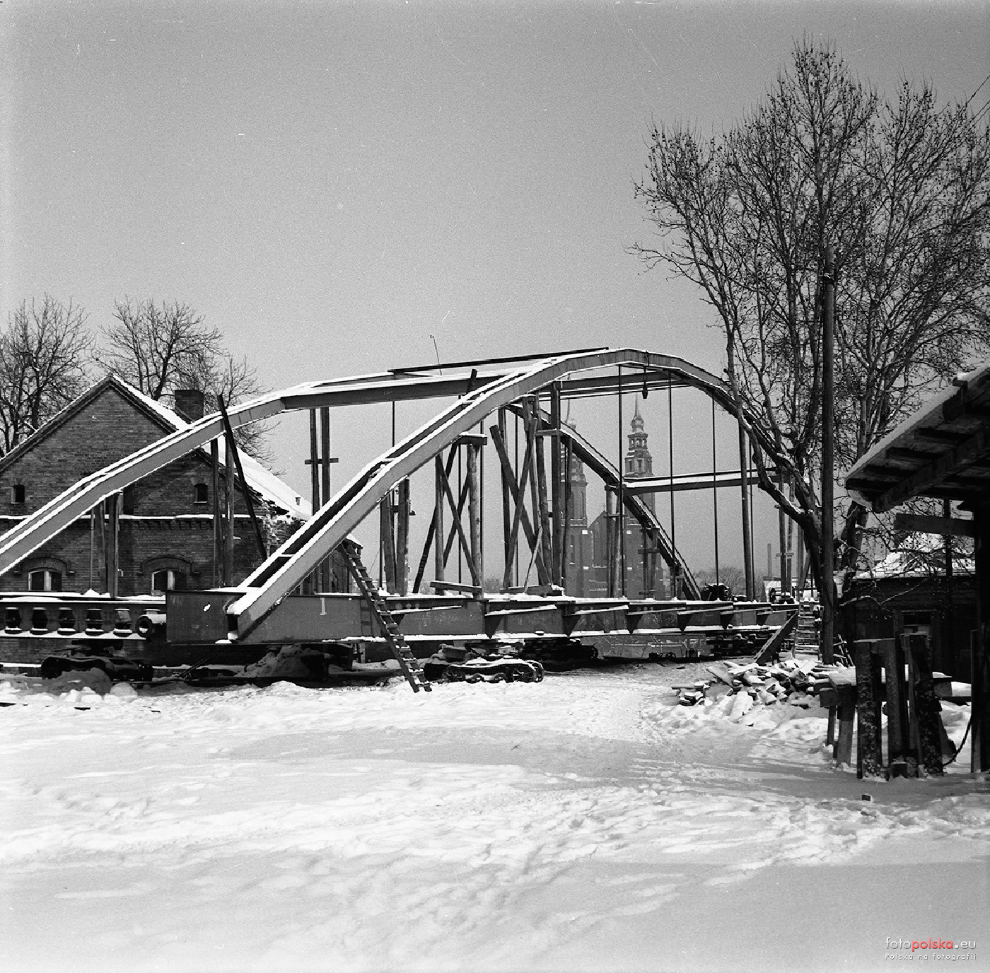 Lata 1962-1963 , Gotowe do nasunięcia na filary przęsło mostu Piastowskiego. Po lewej Dom Celnika.Skomentuj zdjęcie