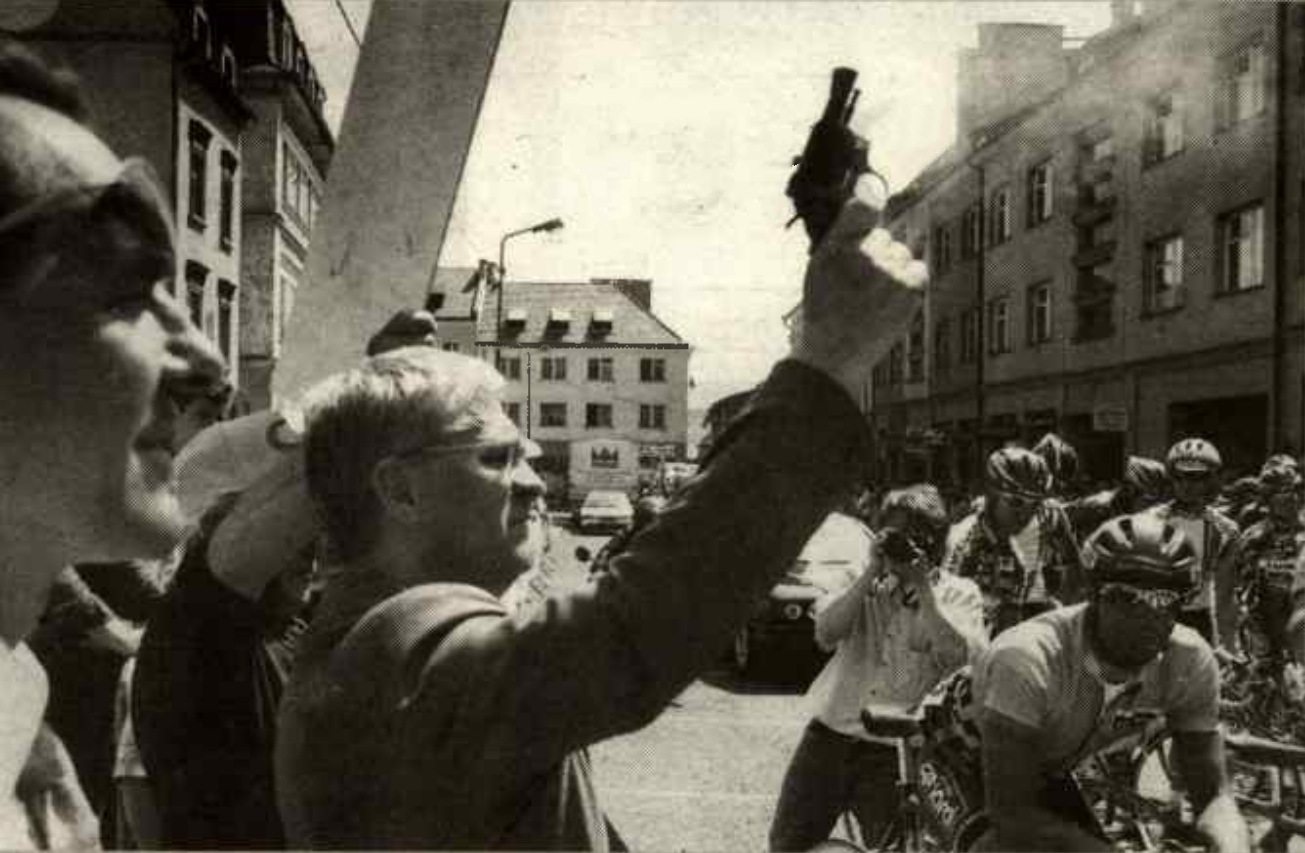 15 maja 1997 , Burmistrz Prudnika Jan Roszkowski tuż przed rozpoczęciem etapu Wyścigu Pokoju.Skomentuj zdjęcie |