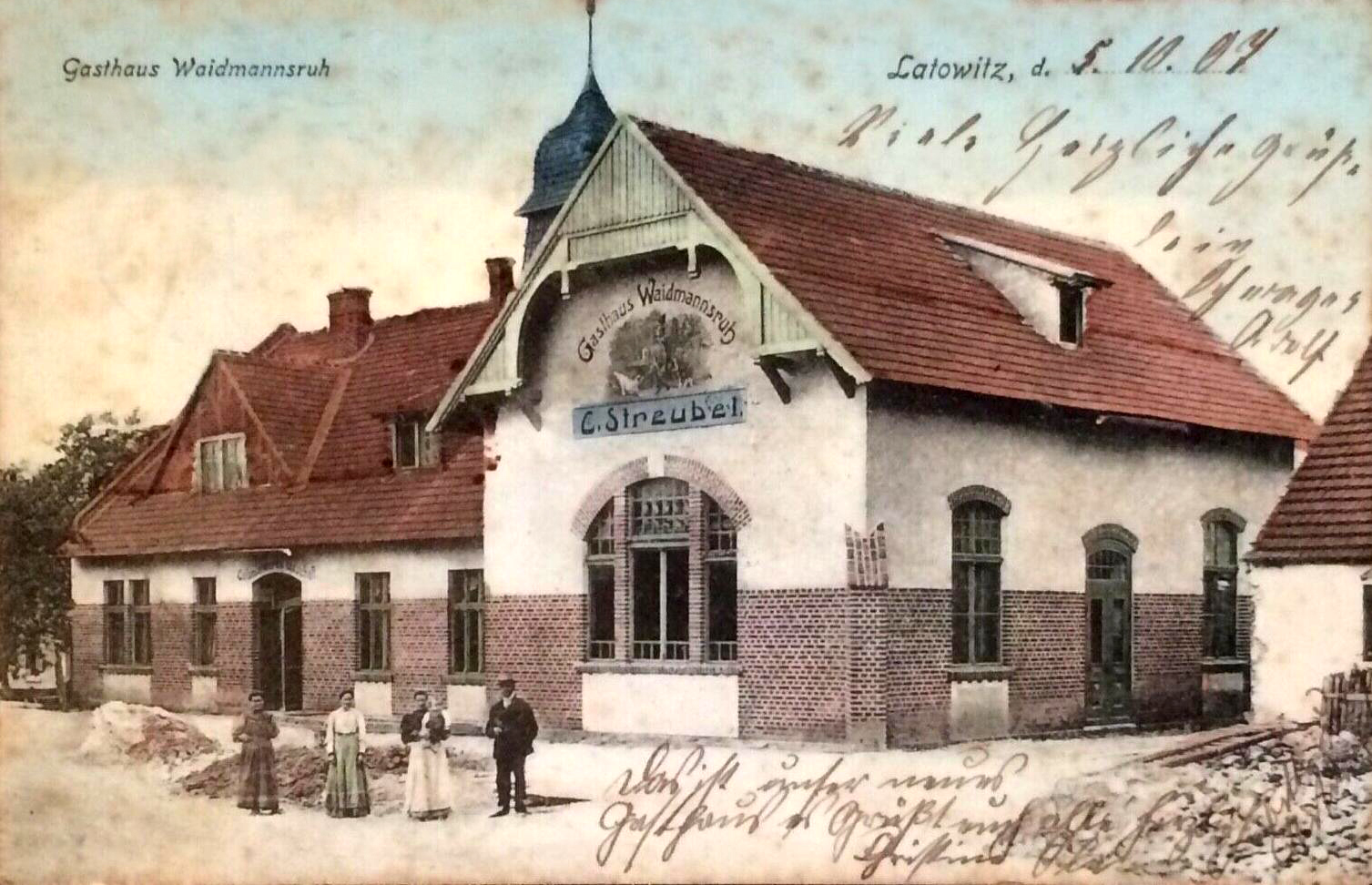 Lata 1904-1907 , Gościniec w Latowicach - "Gasthaus Waidmannsruh", właściciel: C. Streubel.Skomentuj zdjęcie