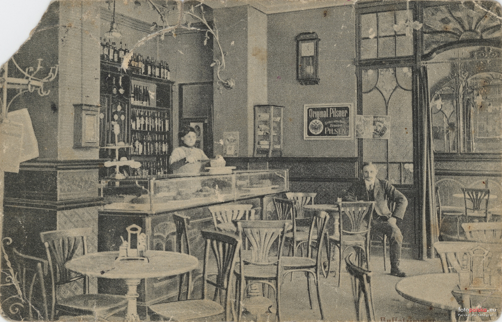 Lata 1910-1911 , Wnętrze cukierni-kawiarni "Cenral" przy Neudorferstrasse dawny numer 17Skomentuj zdjęcie