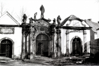 11 marca 1989 , Kaplice grobowe na cmentarzu ewangelickim przy kościele Podwyższenia Krzyża Świętego. Od lewej grobowiec rodziny Ihle (14), grobowiec rodzin Gottfried i Schell (15), oraz grobowiec rodziny Streif (16). Po prawej widoczny fragment dachu "Domu Dzwonnika", dziś ruiny przy Kilińskiego 40. Podziękowania dla Pana Marka Samborowskiego za udostępnienie zdjęcia.Skomentuj zdjęcie |