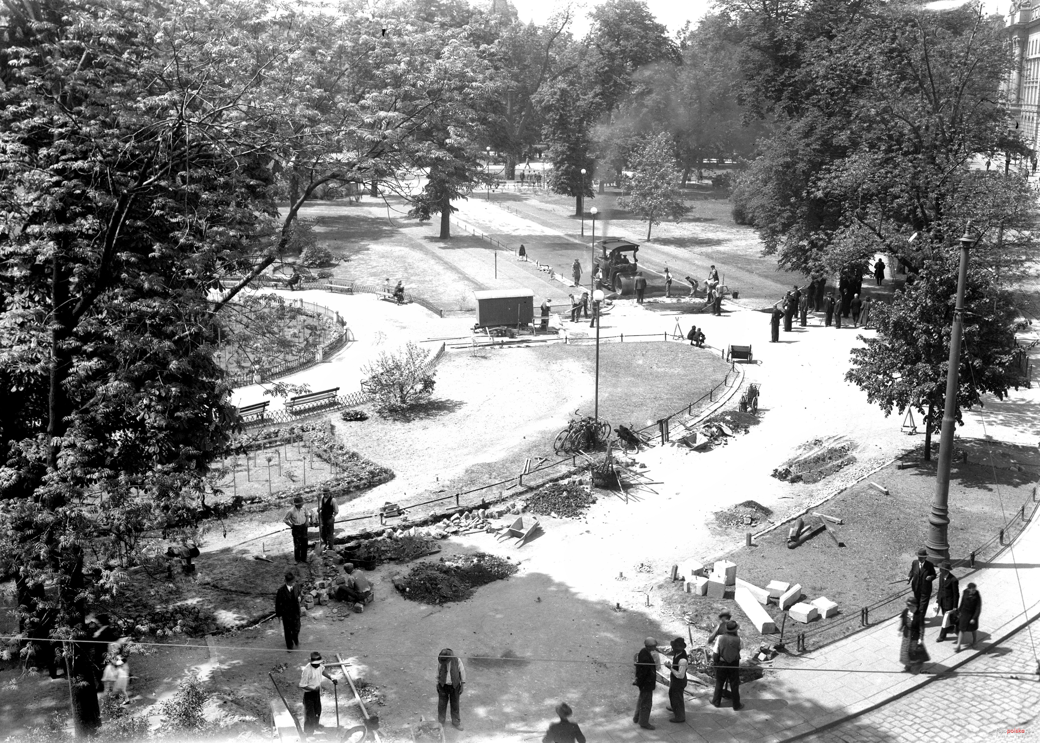 lipiec 1928 , Przebudowa Plant - ujęcie z narożnej kamienicy przy Lubicz 1 - Westerplatte 1.Skomentuj zdjęcie