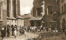 Lata 1920-1930 , Plac Mariacki, po lewej fragment Kościoła Mariackiego, po prawej Kościół św. Barbary z widoczną kaplicą ogrojcową.