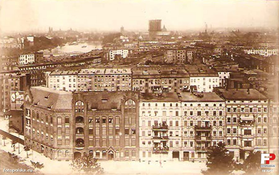 Lata 1918-1919 , Widok na nieistniejącą zabudowę w okolicach placu Grunwaldzkiego, kamienice na pierwszym planie stały przy ulicy Nauczycielskiej, tutaj widać budynek stojący po lewej stronie -Skomentuj zdjęcie