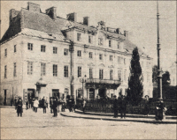 Lata 1912-1914 , "Pałac Karasia na Krakowskim Przedmieściu w początkach naszego stulecia, na prawo ogrodzenie przed pomnikiem Kopernika" - zdjęcie (skan) pochodzi z tygodnika Stolica nr 45-46 (1716-17) 09.11.1980Skomentuj zdjęcie
