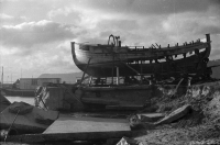 Lata 1945-1949 , Port rybacki w Gdyni, Basen Prezydenta, nabrzeże Prezydenta. Kadłub kutra "GDY 7".Skomentuj zdjęcie |