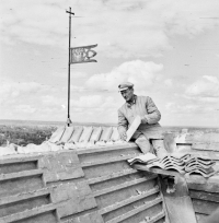 Lata 1955-1965 , Dekarz przy pracy - widok z wieży kościoła NMP w kierunku północno-zachodnim.