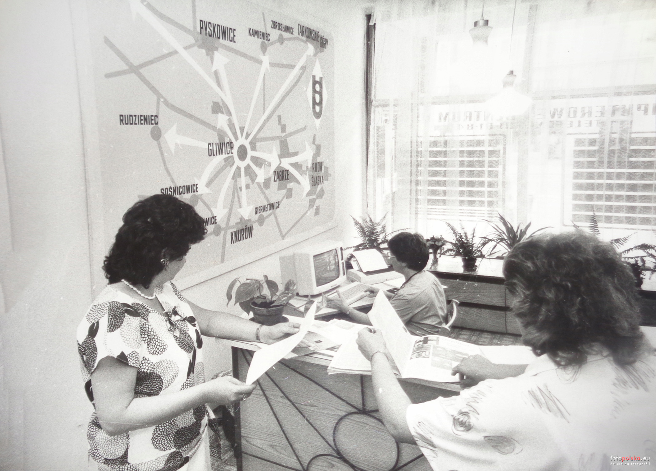 30 sierpnia 1987 , Komputerowe Centrum Usług w Gliwicach jest pierwszym tego typu spółdzielczą placówką w kraju. Do pamięci komputera wprowadzono wszystkie 142 zakłady Gliwickiej Usługowej Spółdzielni Pracy, a zgłoszenia nadchodzą również z innych miast. Klienci mogą uzyskać pełny wykaz placówek telefonicznie, a zgłaszający się osobiście otrzymuje bezpłatnie wydruk z podanymi zakładami usługowymi. Komputerowe Centrum Usług rozpoczęło pracę 6 sierpnia i cieszy się dużą popularnością.Skomentuj zdjęcie