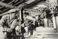 Na zdjęciu: jednym z pierwszych, którzy podjęli zobowiązanie przedzjazdowe byli, od lewej, Edward Błażej i Józef Różański przy formowaniu segmentów izolatorów "J - 132"
