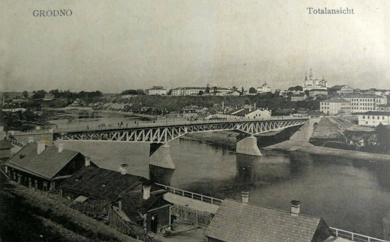 Lata 1912-1914 , Most na Niemnie przed zniszczeniami I wojny światowej. Podobne ujęcie z lat 30. XX wieku: .Skomentuj zdjęcie